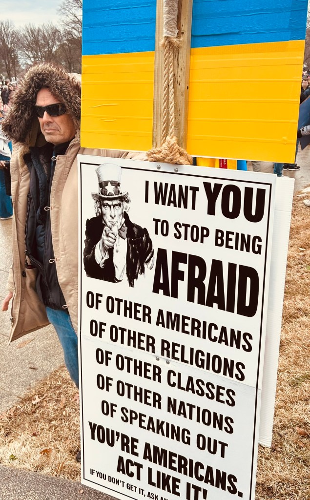 The Trump 2.0 protest was every bit as creative, energized, and lively as 8 years ago, but at a much lower volume. I took the Metro downtown from Rockville by myself this time, Andrea being down with a bug. Instead of marching, I walked directly to the Lincoln Memorial grounds from Foggy Botton Metro station, a commute I knew well from my 15 year career at the GW Medical Center there.