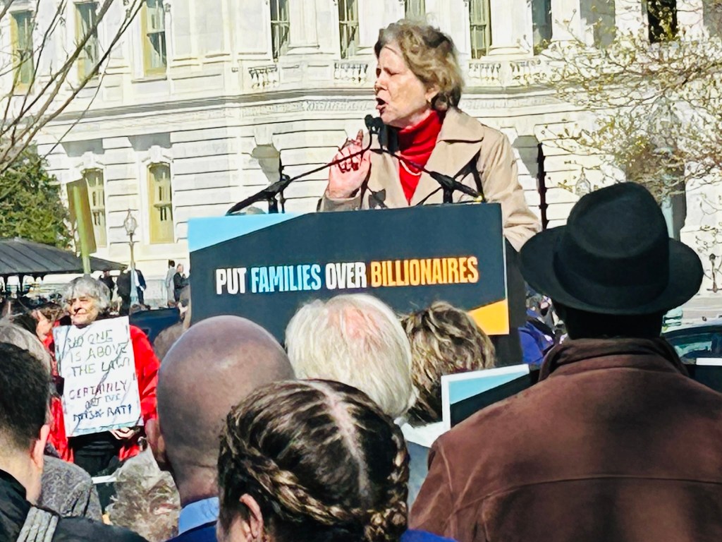 I just returned from an invigorating political rally on the U.S. Capitol grounds, attended by hundreds. It was organized by “Families Over Billionaires”, a consortium of labor unions, non-profit advocacy groups, and some elected Democratic officials. Its main targets were the current Republican economic initiatives which would give billions of dollars in tax breaks to the wealthiest Americans while making steep cuts in Medicaid, Medicare, and even Social Security. The program featured some high-ranking congresspeople as well as grass roots organizers and ordinary citizens. As usual, I took photos to help communicate some of the spirit of the gathering.