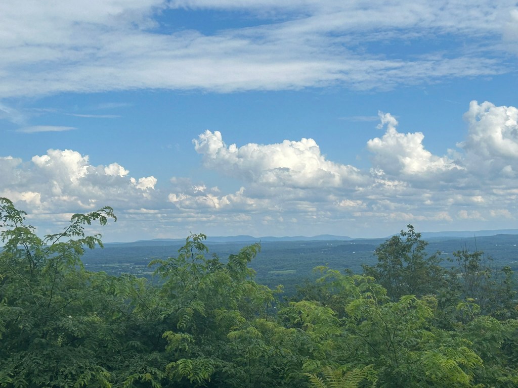 I took the third leg up through Wilkes Barre and Scranton to I-84 and on to Port Jervis, NY. And Andrea got us from there to New Paltz, NY, taking backroads — Rt. 209 through Ellenville and then 55 and 299, along and then across the Shawangunk Mountains with some beautiful vistas.