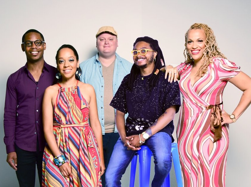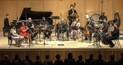 The Imani Winds and Harlem Quartet with jazz pianist Alex Brown, A. B. Spellman at the microphone, Edward Perez on bass, Neil Smith on drums