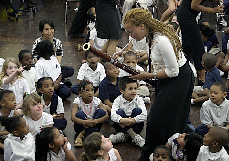 Bassoonist Monica Ellis of Imani Winds plays for kids Members of Imani Winds, left to right: Brandon Patrick George (flute), Mekhi Gladden (oboe), Mark Dover (clarinet), Kevin Newton (French horn), Monica Ellis (bassoon)